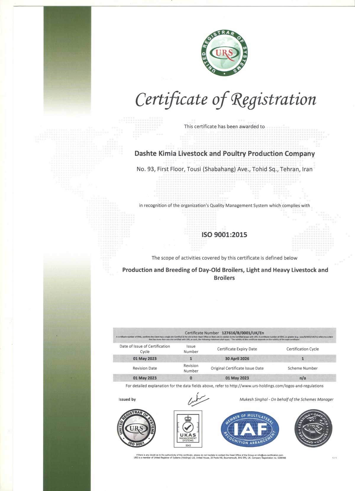 dasht kimia ISO9001 scan certificate