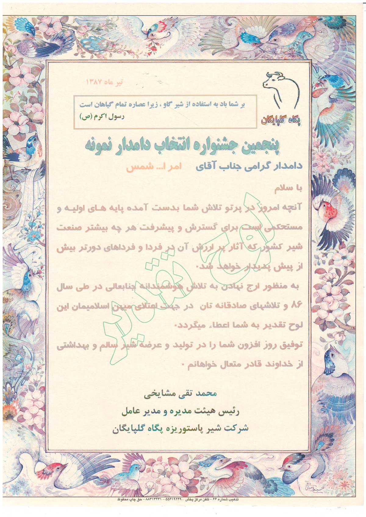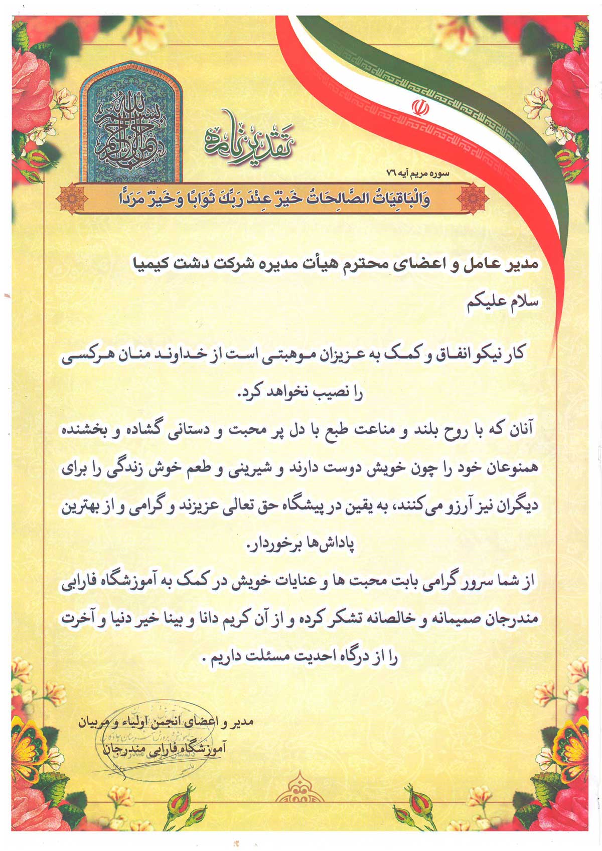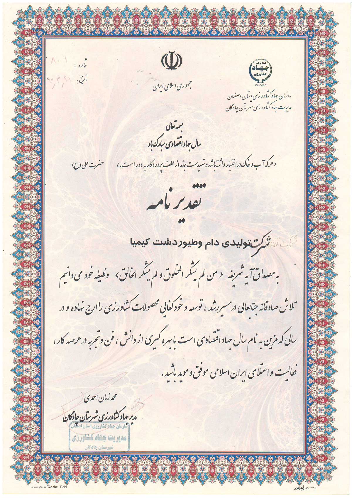 Thanks to the Director of the Agricultural Jihad of Chadegan